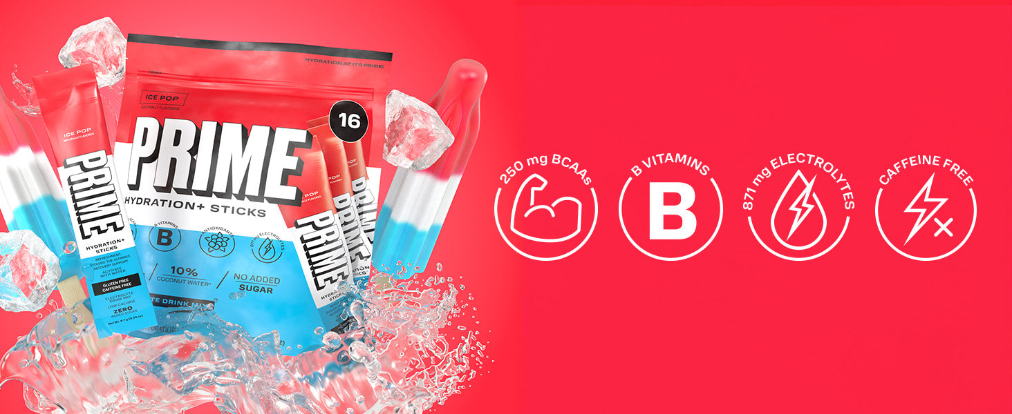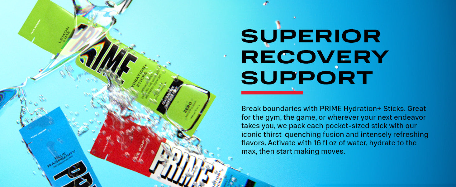 PRIME Hydration+ Sticks are single-serve electrolyte powder sticks designed to support hydration, recovery, and overall wellness. Just mix with water for a refreshing drink anytime.